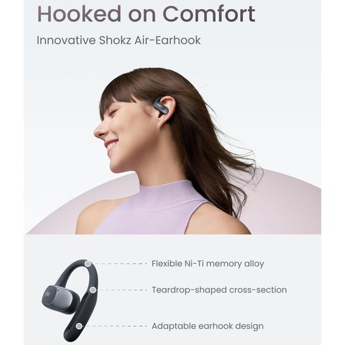 These innovative headphones feature the Shokz Air-Earhook, ensuring a secure and comfortable fit for any activity. The open-ear design allows for unmatched comfort and situational awareness, keeping you safe by letting you stay alert to your surroundings.