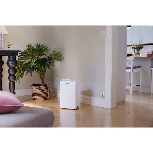 Its streamlined design, combined with a practical carrying handle, allows you to move it effortlessly between rooms or into areas where dampness is most problematic.
