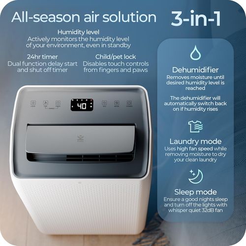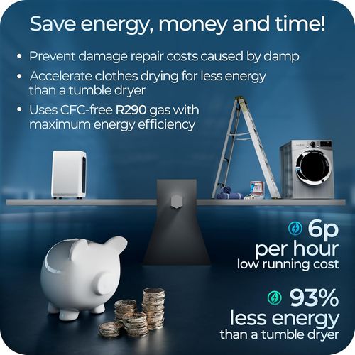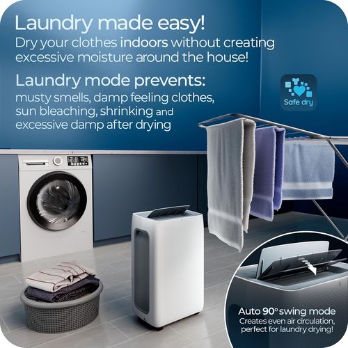 Energy efficiency is a key feature of the Avalla X-500, with running costs of just 6p per hour. Quiet operation at only 30dB means it can be used day or night without disturbance, making it a practical choice for bedrooms and living spaces alike. For added functionality, the one-touch laundry drying mode provides a quick and economical way to speed up indoor clothes drying, especially useful during the colder months.