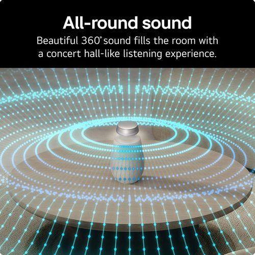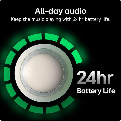 Finished in a warm beige tone, the LG Xboom 360 Bluetooth speaker brings stylish design together with immersive sound for everyday listening at home or on the move. Its innovative 360° sound technology fills any space evenly, allowing music to be enjoyed clearly from every angle without the need for precise positioning. Subtle multi-coloured ambient lighting adds atmosphere, creating a relaxed and modern feel that complements any room.