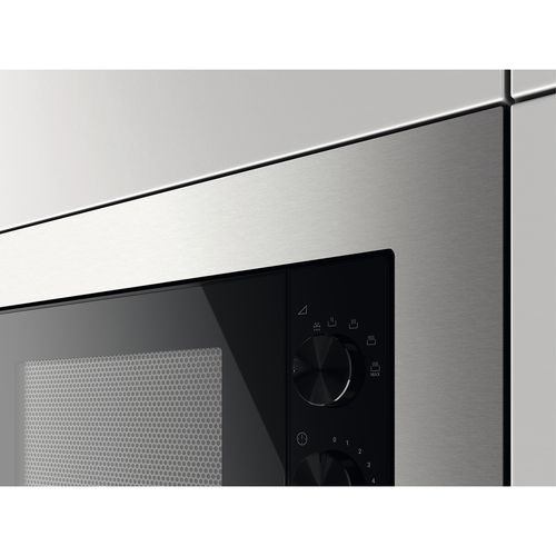 The Zanussi ZMXN5SX built-in solo microwave combines functionality with a sleek, fingerprint-proof stainless steel finish, making it a stylish addition to any modern kitchen.