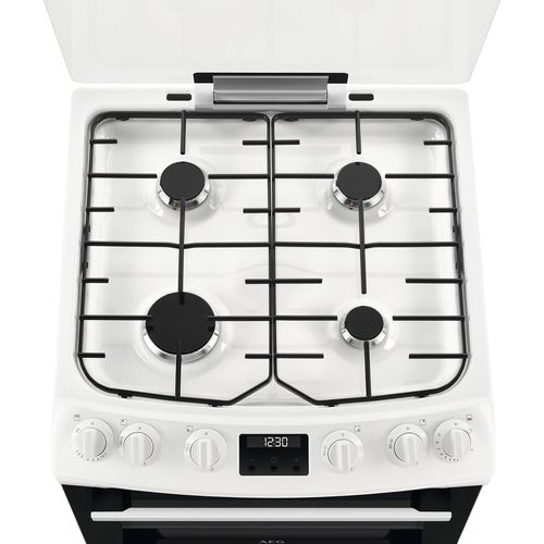 The AEG 60cm gas cooker, finished in classic white, offers the perfect blend of precision and practicality for any modern kitchen.