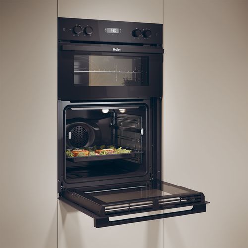 The Haier HWO9M2M5B Series 2 Built-In Electric Double Oven combines sleek design with practical performance, making it a perfect addition to any modern kitchen. Its symmetrical lines, two-tone handle and premium black finish create a sophisticated look, while dual ovens offer flexible cooking for every meal.