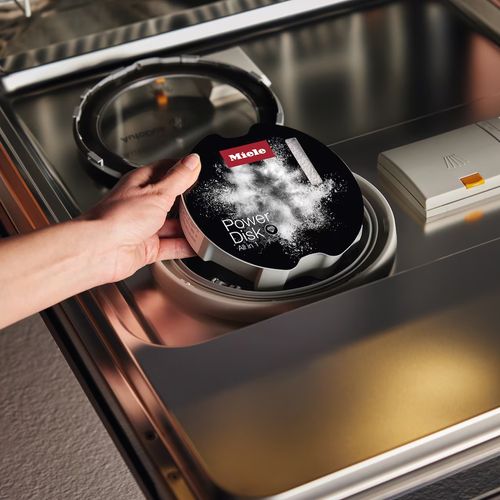 The Miele PowerDisk All in 1 delivers exceptional cleaning performance when used with Miele dishwashers featuring the AutoDos automatic dispensing system. This exclusive powdered granulate contains active oxygen to tackle even stubborn, dried-on food, ensuring spotless, hygienic results on every cycle.