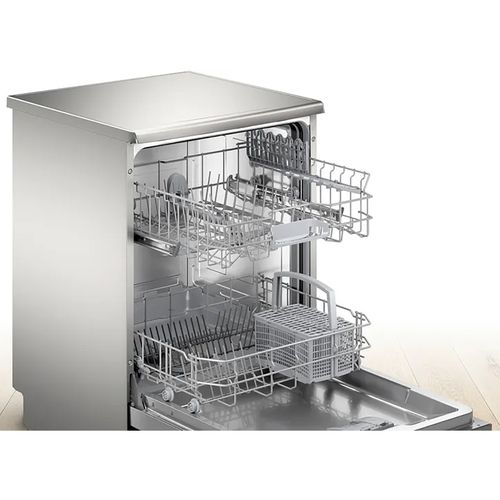The Bosch SMS26AI08G full-size dishwasher, finished in sleek stainless steel, is a perfect combination of performance, style, and practicality for any modern home.