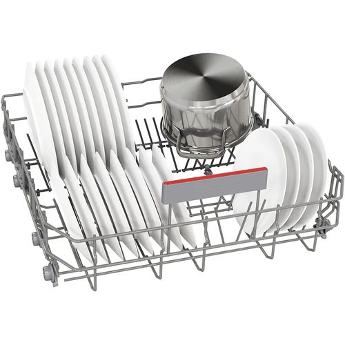 With six versatile programmes to suit a variety of loads, the dishwasher also features an Extra Dry function to ensure every item, from delicate glassware to sturdy cookware, emerges spotless and ready to use. The height-adjustable top basket adds flexibility, accommodating larger dishes or awkwardly shaped items with ease. Powered by Bosch's EcoSilence Drive, the appliance operates quietly and efficiently, making it ideal for open-plan living spaces.