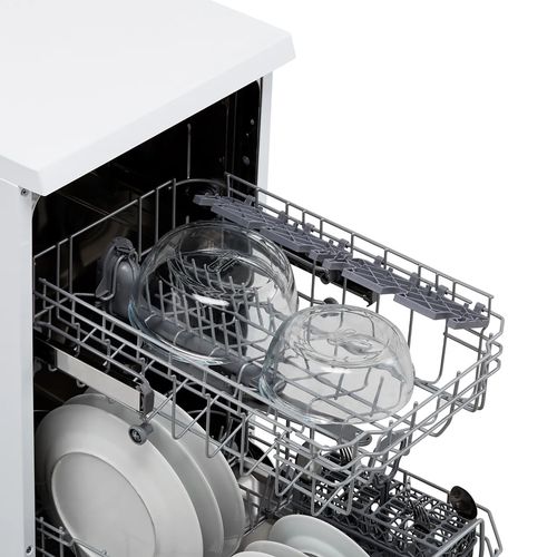 Operation is refreshingly straightforward thanks to clear push button controls, making programme selection quick and intuitive. Five wash programmes give you flexibility for different loads, from lightly used items to more thorough cleaning when needed. The delayed start function allows you to set the cycle to begin after 3, 6, 9 or 12 hours, helping you fit dishwashing around your daily routine.