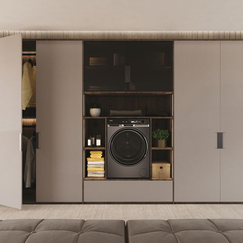 The Haier 11kg washing machine, finished in graphite, combines impressive capacity with advanced technology to simplify laundry day.