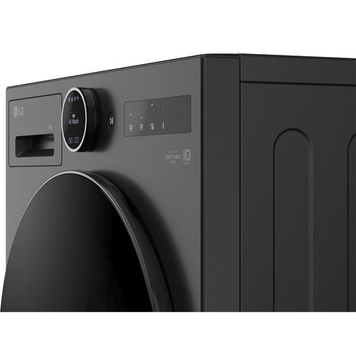 The LG F4X7009TBB washing machine in black offers a thoughtful blend of capacity, efficiency and intelligent fabric care.