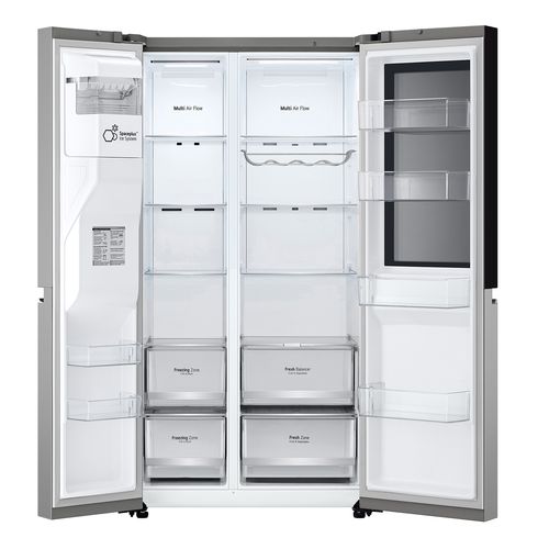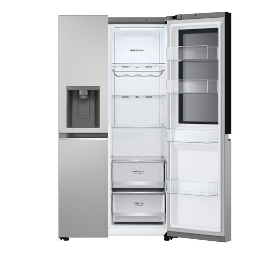 The LG InstaView American style fridge freezer in Prime Silver brings generous storage, modern styling and clever convenience to the heart of your kitchen.