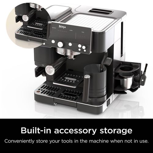 Store the funnel and tamper on the left side of the machine, while the baskets and cleaning accessories can be stored on the right compartment. The portafilter also slots neatly into the group head.