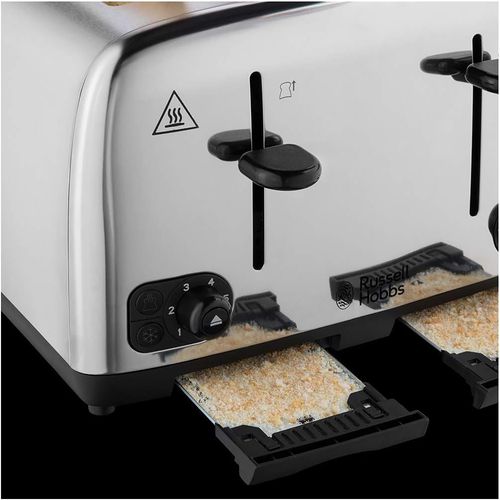 This sleek stainless steel finished Russell Hobbs Adventure 4 slice toaster has all the toasting functions you could ever need!