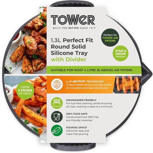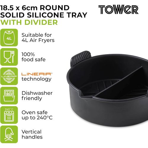 The silicone trays are the perfect size to fit comfortably in any 4L Tower air fryer. Suitable for use in the microwave, fridge, freezer & oven, offering a plethora of cooking options and versatility