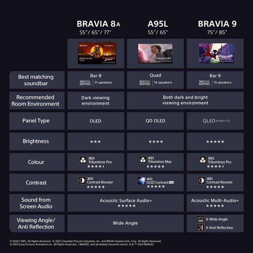 55"77"The Sony XR8A 55" Ultra HD OLED TV delivers a breathtaking viewing experience, combining exceptional picture quality with cutting-edge technology and intelligent design.