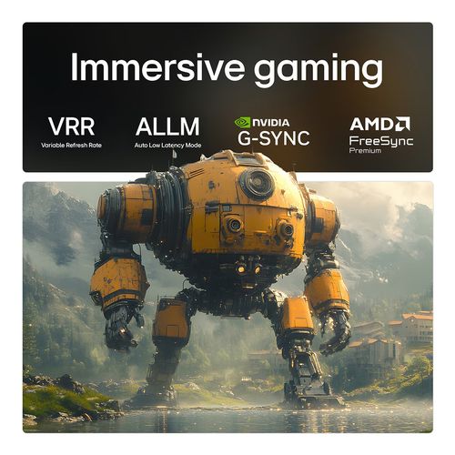 For an immersive cinematic experience, the TV supports Dolby Vision IQ, HDR10, and HLG, adjusting picture settings based on ambient lighting conditions. Dolby Atmos technology delivers multidimensional audio, creating a lifelike soundstage that complements the stunning visuals. Gamers will appreciate the inclusion of NVIDIA G-SYNC and AMD FreeSync compatibility, as well as the Game Optimiser feature, which provides a tailored gaming experience with low latency and high refresh rates.